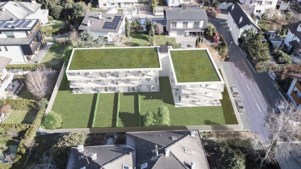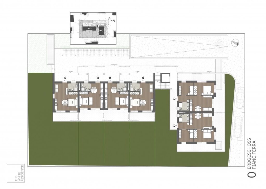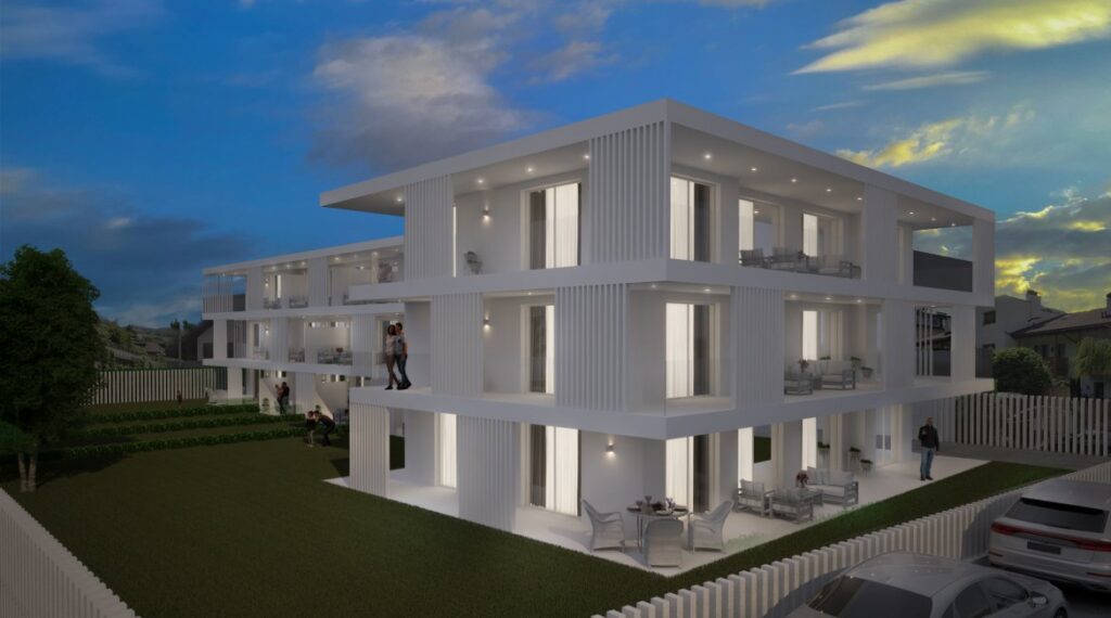 12 appartamenti di nuova costruzione su 3 piani con giardini privati, terrazze, balconi, cantine e garages nell`interrato